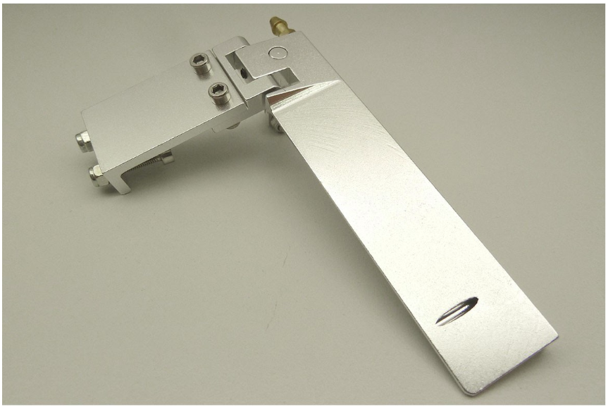 Mehrteiliges Keilruder-Set aus Aluminium mit im Ruderblatt integriertem Kühlwassereinlass. Im Neigungswinkel verstellbare Aufnahme für das Anlenkungsgestänge.