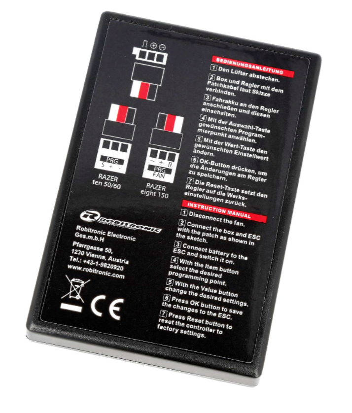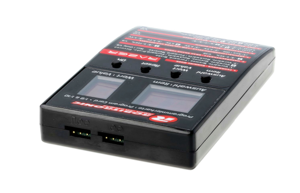 Diese LED-Programm-Box ist geeignet für die Programmierung der Robitronic Razer ten & eight Regler. Die Programmierung der Regler erfolgt mit dieser LED-Programm-Box einfach und schnell. Klein genung um sie immer einsatzbereit dabei zu haben.