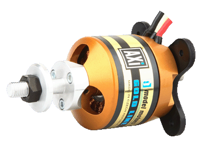 A new feature in the AXI design is a provision for radial mounting (see picture). The optional radial mount set includes: mounting flange, propeller adaptor, securing collar, and screws. The unique design of these motors gives extremely high torque levels to turn large diameter and high pitch propellers with a high level of efficiency. This motor is suitable for large sailplanes weighing up to 4500g and sports aerobatic models up to 3000g.