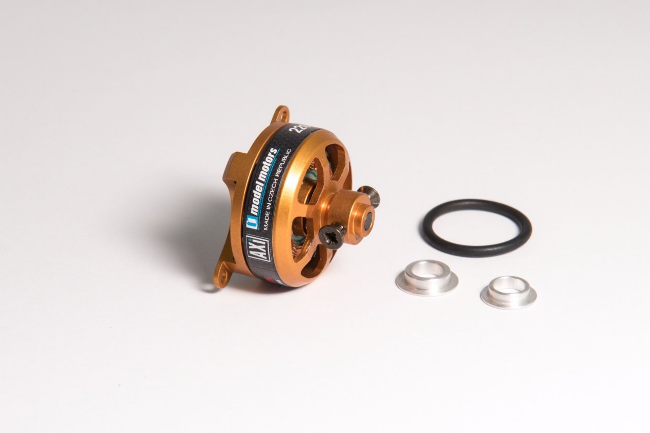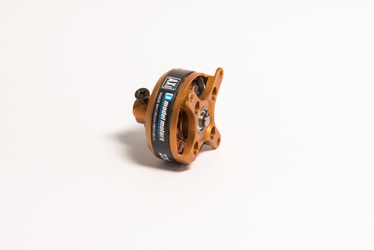 New very light motor AXI 2203/46 GOLD LINE V2 with shaft, integrated prop saver and three-point mounting lugs reach just 20g in weight. This motor was designed especially for area of the lightest indoor aerobatic models. New three-point mounting lugs allows easy mounting to the fuselage of model and fast centering of motor. 3,17mm best quality shaft is supported by two ball bearings. This motor is suitable particularly for light 3D and aerobatic indoor models up to 220g in weight.