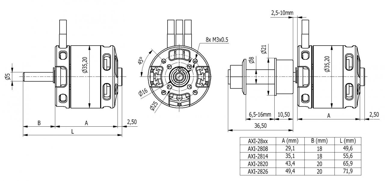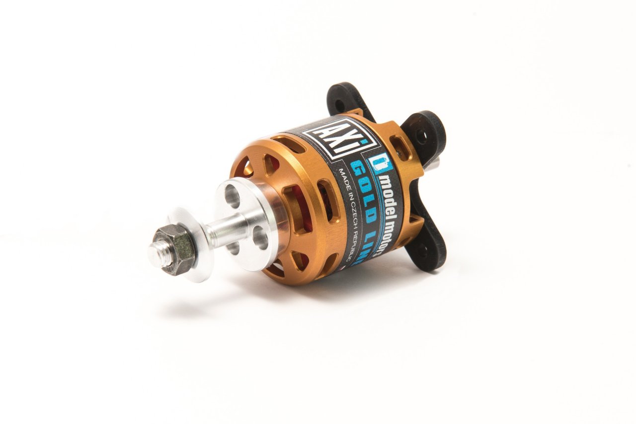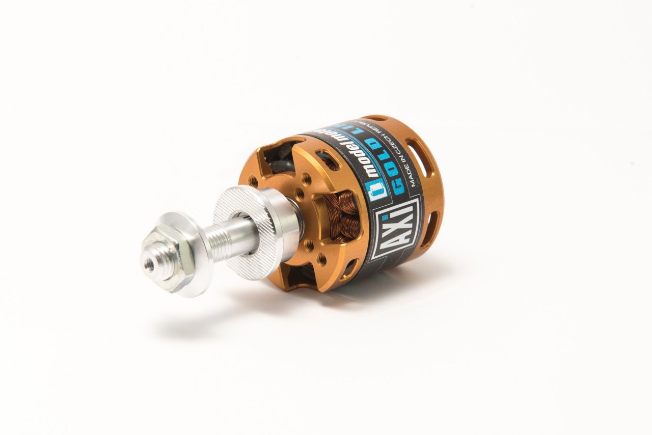 Due to it’s high torque characteristics this motor is capable of turning large propellers with a high level of efficiency and without the need for a gearbox. A new feature in the AXI design is a provision for radial mounting (see picture). Delivered as standard radial mount set includes: mounting flange, propeller adaptor, securing collar, and screws.