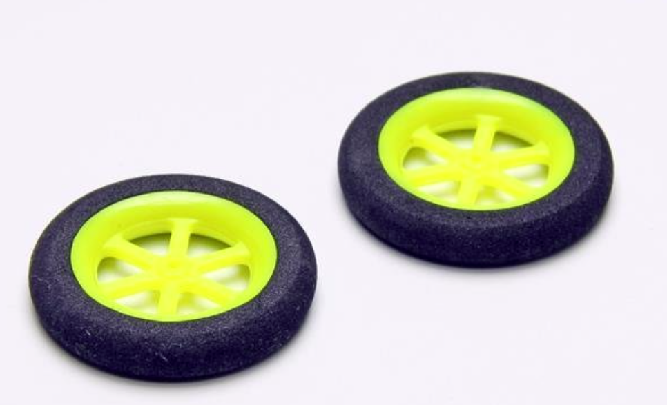 Räder für Flugmodelle u.ä., stabile und leichte Nylonfelge mit aufgezogenem Moosgummireifen, Packungsinhalt: 2 Stück