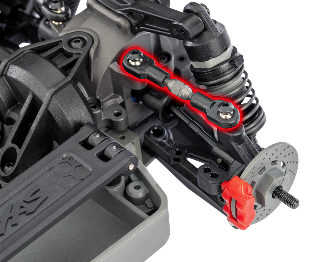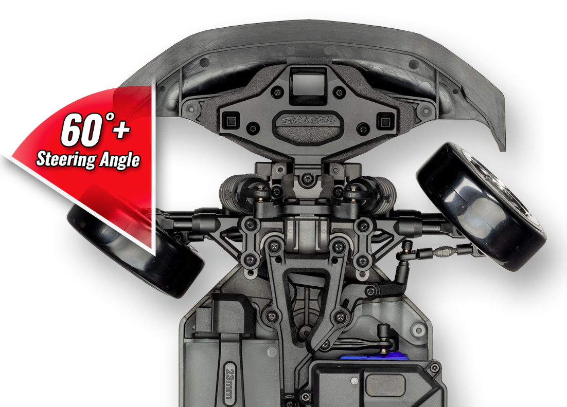Das 4-Tec Drift bietet über 60° Lenkwinkel bei vollem Lenkeinschlag, um große seitliche Drifts und schnelle Übergänge zu ermöglichen. Die Vorderachse ist speziell für Driften abgestimmt und verfügt über neue Lenkblöcke, Umlenkhebel und eine Zugstange für maximale Lenkausschläge.