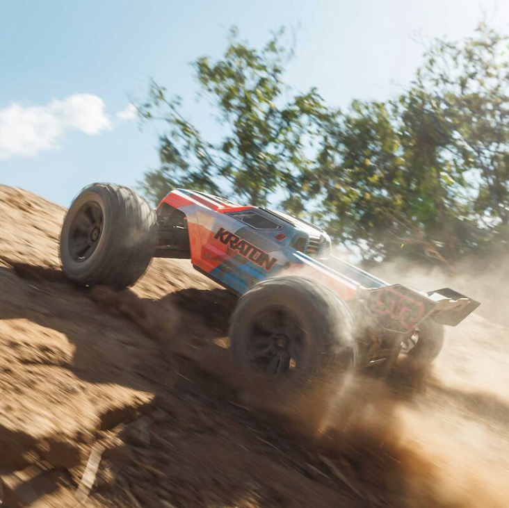 Fahre mit dem ready-to-run KRATON 6S BLX 4X4 auf jedem Untergrund, einschließlich Asphalt, Erde, Schotter oder kurzem Gras. Baue dir ein paar Rampen oder errichte ein paar Hügel aus Erde – und stelle bei jedem Sprung einen neuen Weitsprungrekord auf. Mit deiner Wahl zwischen 4S- oder 6S-Akku und Ladegerät hast du alles, was du für rasanten Monstertruck-Nervenkitzel brauchst, wie ihn nur ARRMA bietet.