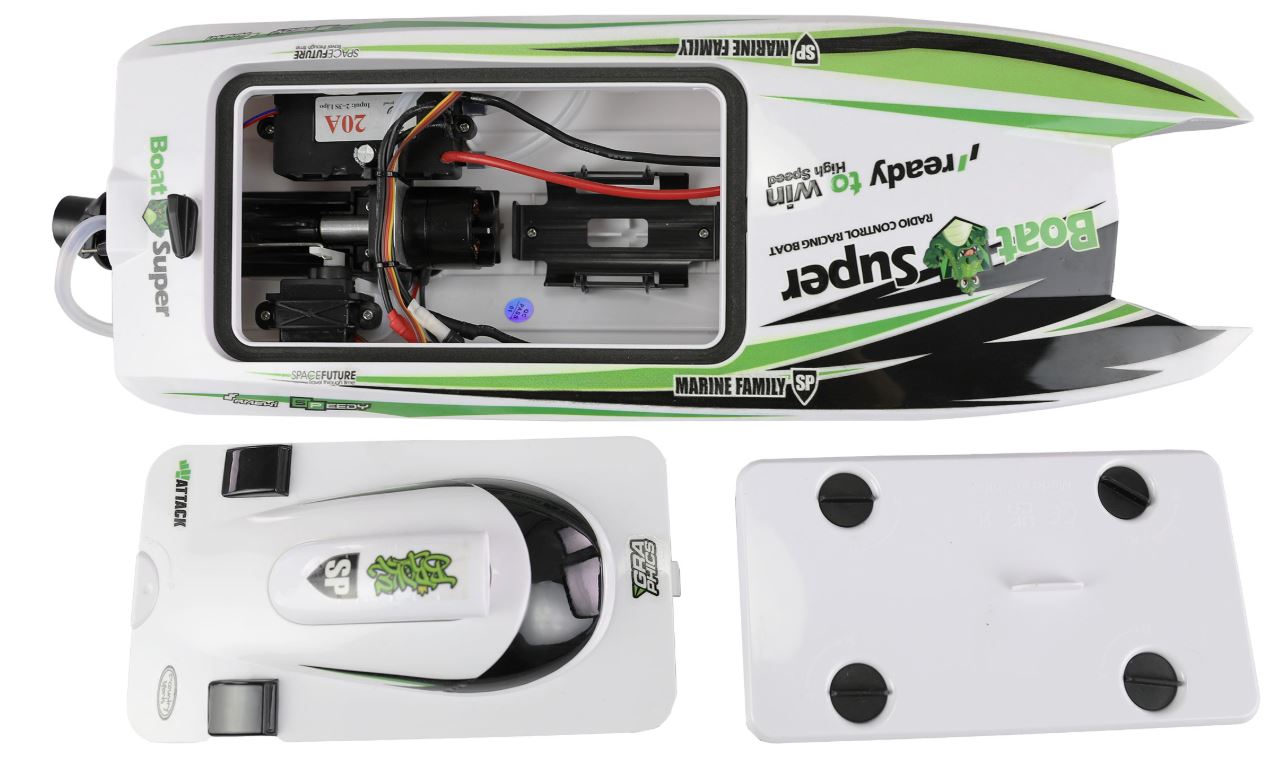 Stell dir vor, du hast ein brandneues Rennboot der Offshore-Klasse, das nicht nur durch sein auffälliges Design besticht, sondern auch mit einem effizienten Jetantrieb ausgestattet ist: Dieses 400mm lange Kraftpaket erreicht Geschwindigkeiten von über 30 km/h und meistert nahezu jede Wasseroberfläche – solange nur ein wenig Wasser unter dem Kiel ist! Der innovative Jetantrieb eröffnet dir mehr Möglichkeiten als ein traditioneller Propellerantrieb, da er Wasser unter dem Boot ansaugt (geschützt durch ein Gitter) und es als komprimierten Strahl am Heck ausstößt, was für enormen Schub und schnelle Beschleunigung sorgt. Der beiliegende 3S 11,1V Li-Ion Akku liefert genug Power für alle deine Manöver, und du kannst sogar auf überschwemmten Wiesen fahren. Äste, Steine oder andere Hindernisse? Kein Problem, dein Rennboot fährt einfach drüber hinweg. Dank der Schubvektorsteuerung, bei der der Antriebsstrahl zur Steuerung genutzt wird, bietet das Boot eine beeindruckende Agilität und Wendigkeit, perfekt für auch die engsten Gewässer. Der Rumpf ist mit einem Schnellverschluss für den Akkuwechsel und einem zusätzlichen Deckel gegen Wasser ausgerüstet. Sowohl der eingebaute Brushless-Motor als auch der Regler sind wassergekühlt, und das zuverlässige 2,4GHz Sendersystem bietet Zusatzfunktionen wie anpassbare Geschwindigkeit und Trimmung, damit du das Boot genau auf deine Bedürfnisse und Fähigkeiten abstimmen kannst.