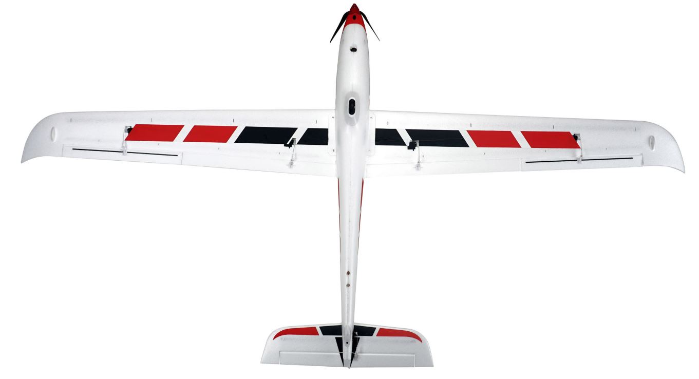 Mit der Herstellung aus robustem EPO-Schaumstoff ist dieser Segelflieger widerstandsfähig gegenüber leichten Kollisionen und Stößen. Kohlefaser-Verstärkungen verleihen dem Flieger eine zusätzliche strukturelle Festigkeit. Dadurch bleibt das Modell auch bei dynamischen Flugmanövern stabil und reaktionsschnell. Das werkseitig installierte Antriebssystem mit einem effizienten 3136/1000KV Brushless-Motor und einem Hobbywing 40A Brushless-Regler – gepaart mit einem 3S oder 4S Lipo-Akku und einem sehr effizienten 10x6 Klapp Propeller – liefert reichlich Schub für schnelle Steigflüge. Lange Flugzeiten von bis zu 30 Minuten sind je nach Gasmanagement und Kapazität des gewählten Akkus möglich. Auf allen Rudern arbeiten 9g Digital Servos (6x) und folgende Funktionen sind steuerbar: Motor/Gas, Querruder, Klappen, Höhenruder, Seitenruder. Das im vorderen Rumpfteil montierte Rad und die Kunststoffteile an den Flügelspitzen sowie am Heck lassen auch Landungen auf härterem Untergrund zu.