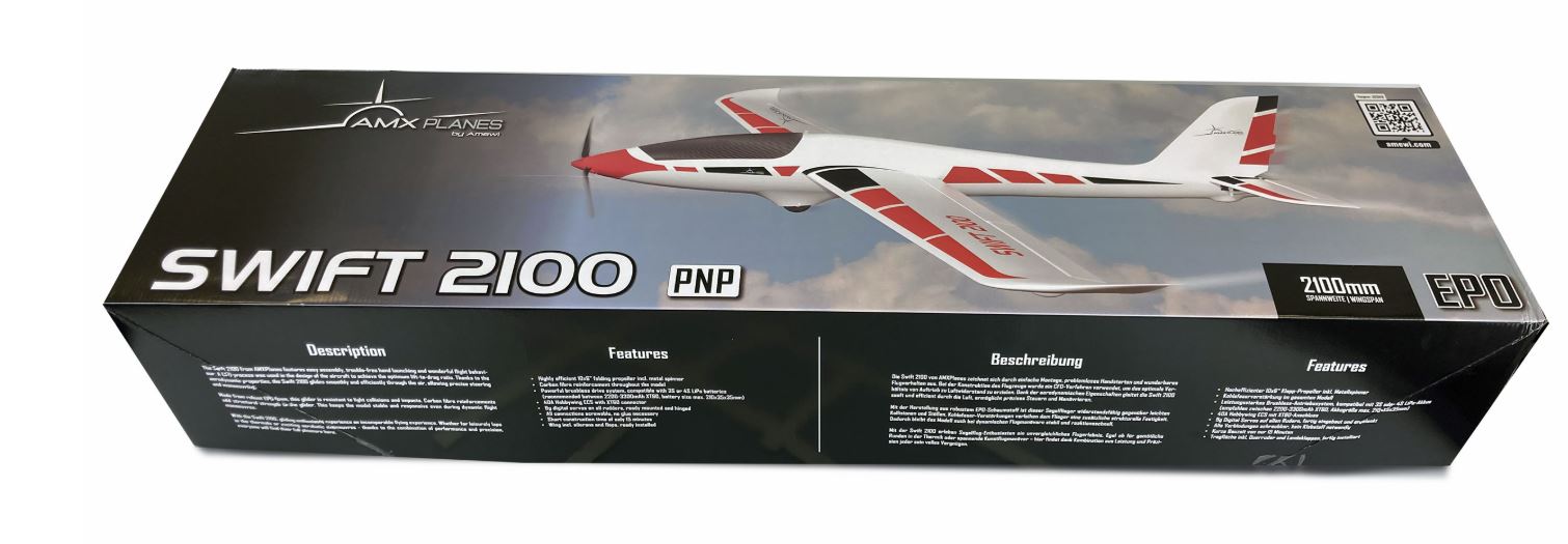 AMXPlanes präsentiert mit der Swift 2100 den ersten eigenen Segelflieger. Das Modell zeichnet sich durch einfache Montage, problemloses Handstarten und wunderbares Flugverhalten aus. Bei der Konstruktion des Flugzeugs wurde ein CFD-Verfahren verwendet, um das optimale Verhältnis von Auftrieb zu Luftwiderstand zu erzielen. Dank der aerodynamischen Eigenschaften gleitet die Swift 2100 sanft und effizient durch die Luft, ermöglicht präzises Steuern und Manövrieren.