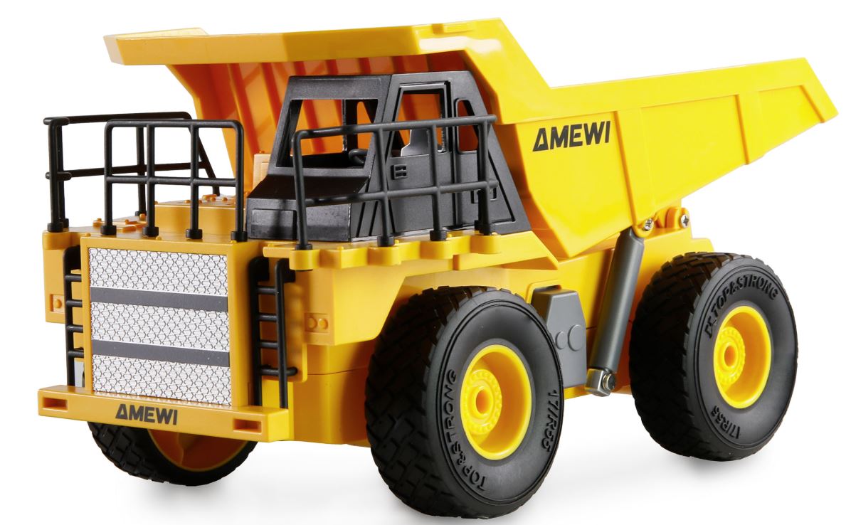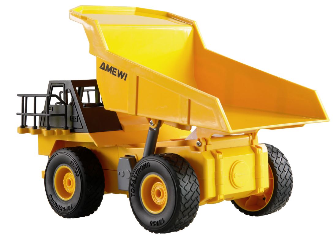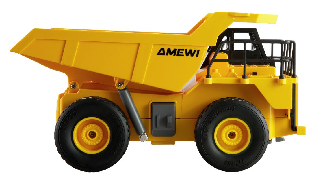 Mit diesem ferngesteuerten Kipper im Maßstab 1:24 kommt echte Baustellen-Atmosphäre ins Kinderzimmer – das RTR-Set enthält alles, was man für den Start braucht: Fernsteuerung, Akku und USB-Ladekabel. Dank der kindgerechten Optik in auffälligem Gelb-Schwarz und der einfach bedienbaren Mulde ist der RC-Kipper ideal für Kinder ab 6 Jahren. Die robuste Gummibereifung, das störungssichere 2,4GHz-System und die spritzwassergeschützte Elektronik sorgen für langanhaltenden Spielspaß – drinnen wie draußen. Per Knopfdruck kann zudem eine Auto-Demo-Funktion gestartet werden, die automatisch alle Funktionen vorführt. Mit bis zu 20 Minuten Fahrzeit pro Akkuladung und wechselbarem Akku steht dem Spielspaß nichts im Weg.