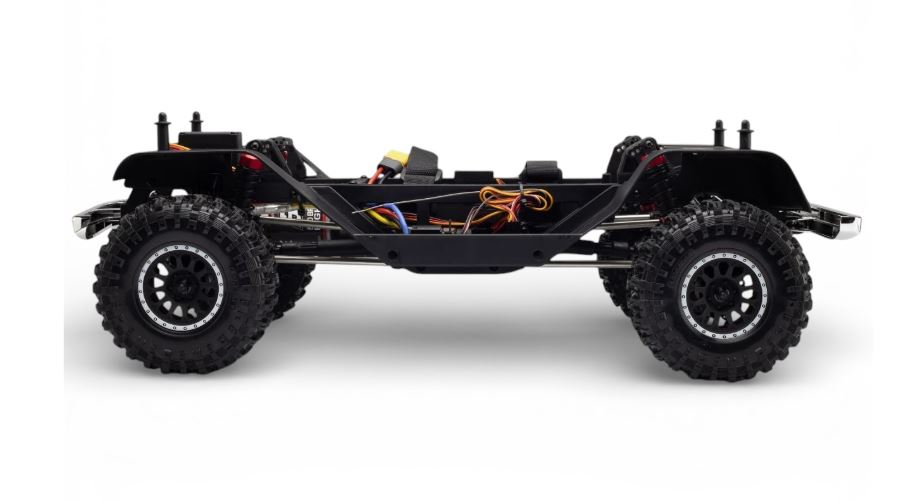 - Hobbywing 60A ESC: Wasserdichter Fahrregler mit speziellem Crawler-Modus für präzises Anfahren und Bremsen.