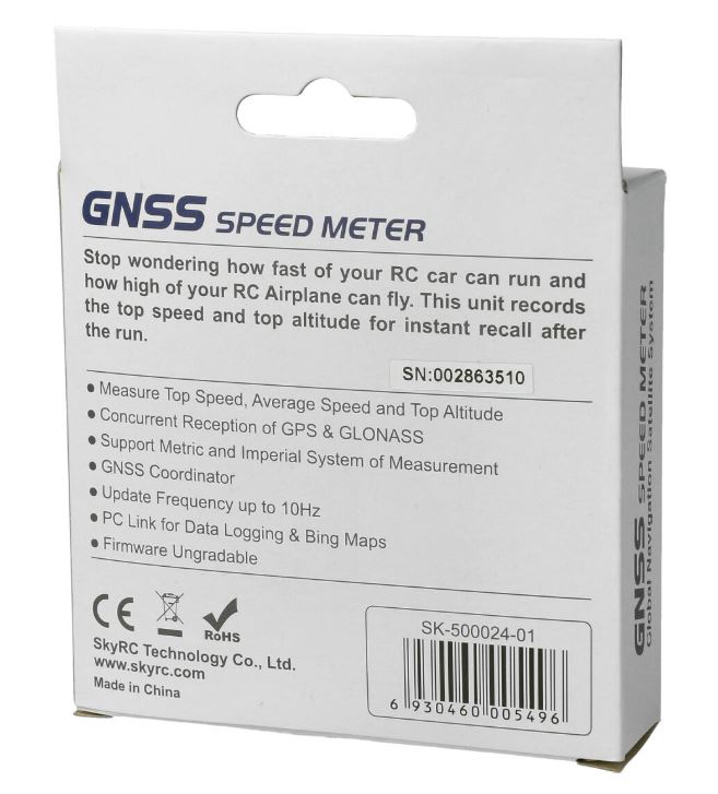 Die hohe Popularität von Global Naviations Satellite Systemen (oder kurz: GNSS) hat SKYRC inspiriert dieses gerade mal 45g schwere und ultrakompakte Gerät für den RC Modellbau zu entwickeln. Die Antenne wurde im Inneren des Gehäuses versteckt und ein hochempfindlicher Empfänger-Chip bestimmt blitzschnell die aktuelle Position. Ein robustes Kontroller-Interface übernimmt die Aufzeichnung von Geschwindigkeit und Höhe in Echtzeit.